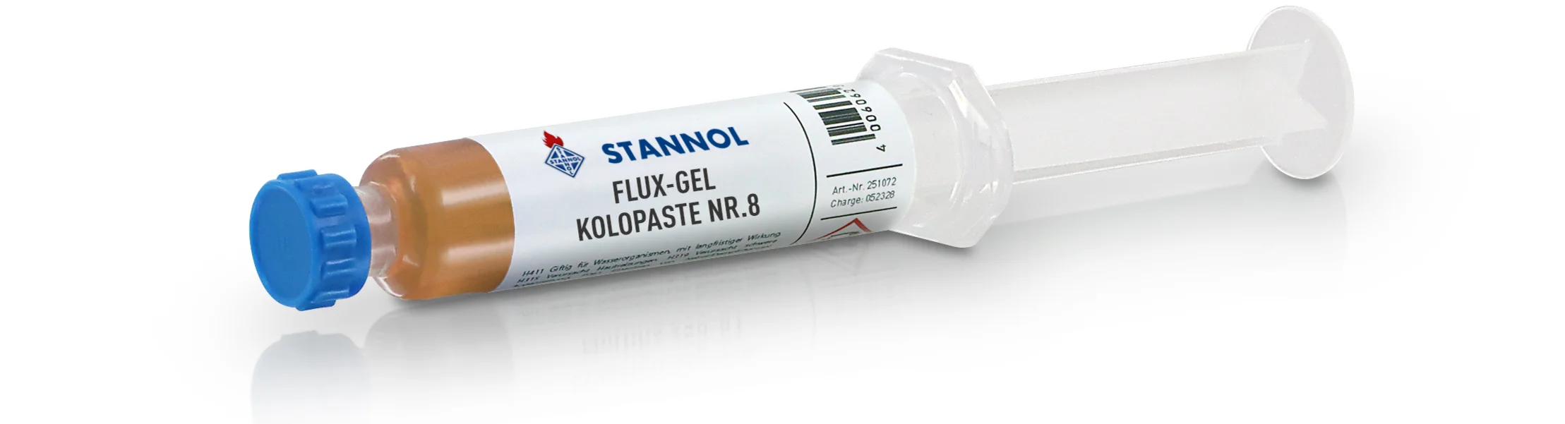 Flux gels for rework and repair are usually developed as No-Clean products. In principle, they have the same chemical properties as the fluxes in solder pastes. We offer a wide variety of flux gels for different applications.